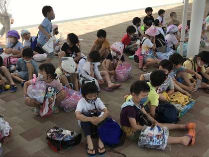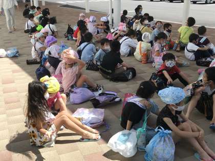 楽しく授業に取り組んでいました。帰りのバスを待つ様子です。