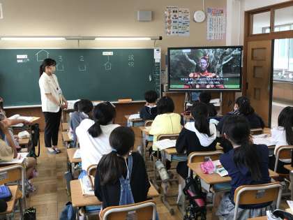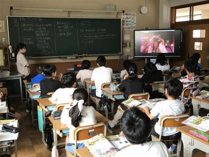 教科分担制による外国語・社会の学習に取り組む様子です。