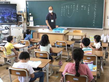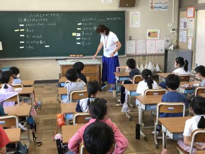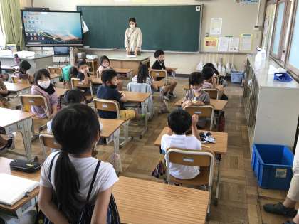 低学年は,担任の先生が中心となって,訓練の成果と課題を確認していました。