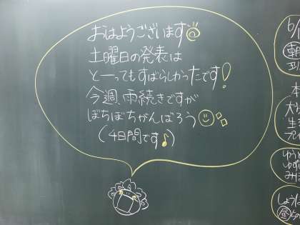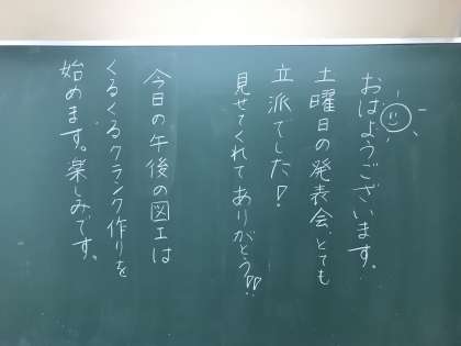 担任からのメッセージが教室で子どもたちを迎えていました。