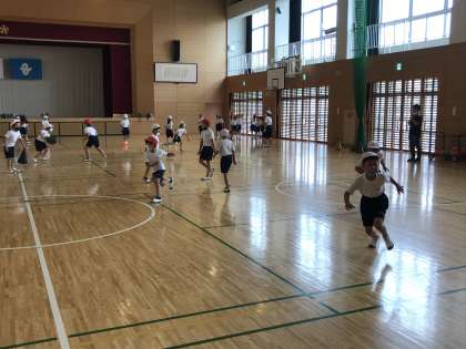 体育の学習に取り組み,楽しそうに体を動かしていました。