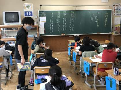 算数や国語の学習に取り組む様子です。SAの中川先生は,個別の支援を丁寧に行ってくれています。