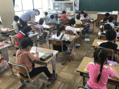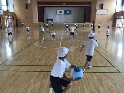 算数の計算問題や体育のボール運動遊びに取り組む様子です。