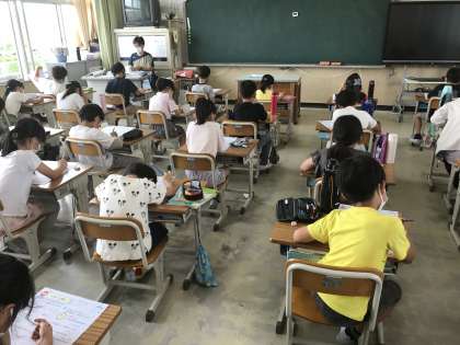 算数のテストに集中して取り組む姿が見られました。