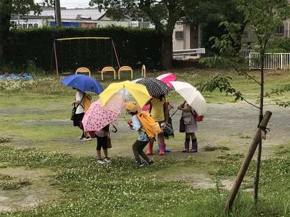 雨の中,傘をさして元気に下校していきました。今日も一日よく頑張りました。