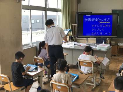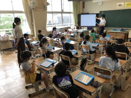 タブレット端末の活用法をICT支援員から学ぶ様子です。