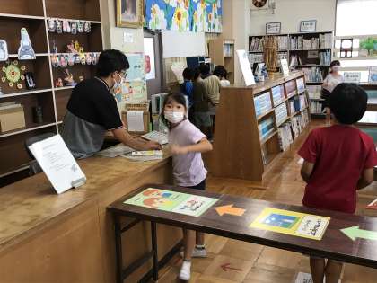 国語の学習や図書館利用する様子です。