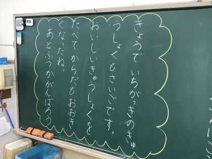 三連休明けの教室は,担任の先生からメッセージが子どもたちを迎えていました。