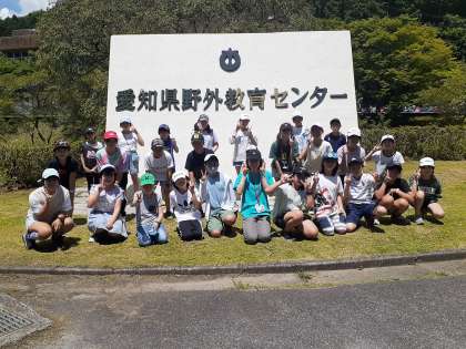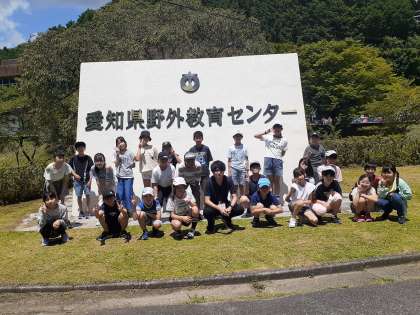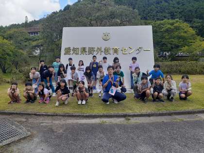 野外教育センターに到着し、学級ごとに写真を撮りました。