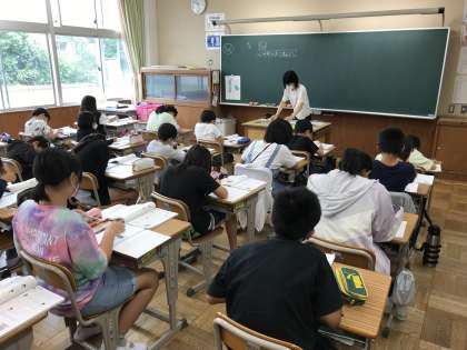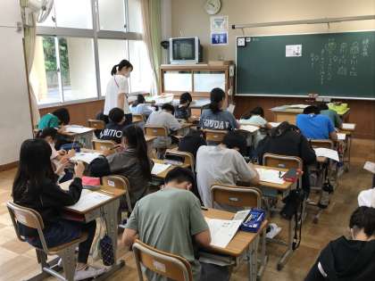 書写の硬筆・社会・算数の学習に取り組む様子です。