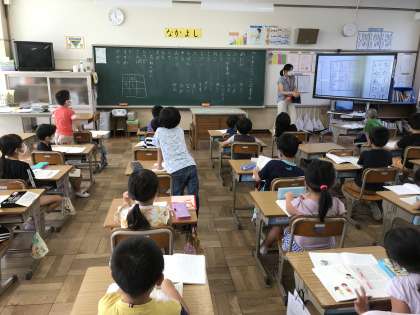 国語のことば遊びや逆上がりのポイントについて学習する様子です。