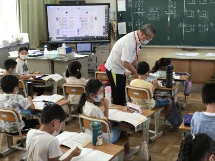 国語や算数の学習に取り組む様子です。