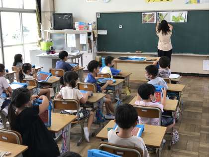 映像を見て学習したり,タブレット端末を活用して学習したりする様子です。