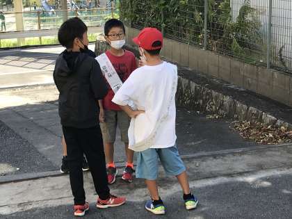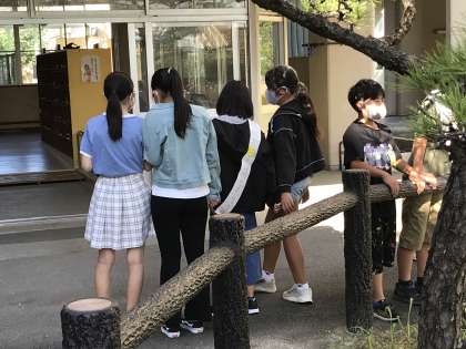 今朝,昇降口付近で選挙活動をする様子です。明日の投票に向けて,最後のアピールを行っていました。