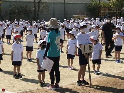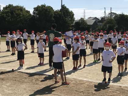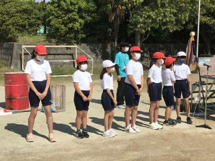 開会式の並び隊形を確認する様子です。司会進行は,総務委員会です。
