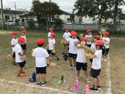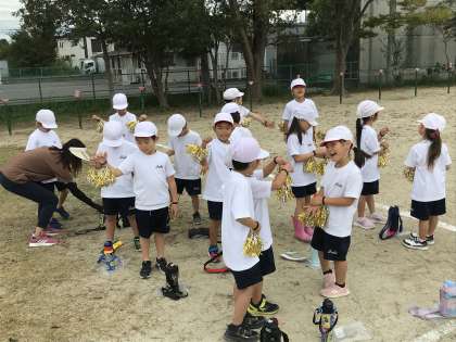 本番同様,ダンスのキラキラを身に付けて控え席に集合する様子です。