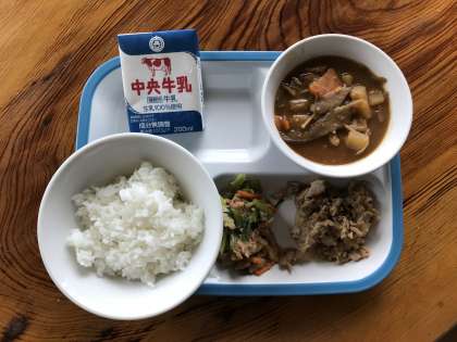 ごはん・牛乳・ぶたにくのしょうがやき・やさいのツナあえ・さつまじる