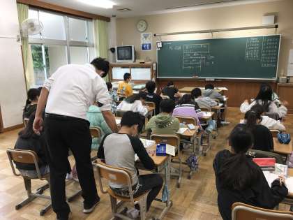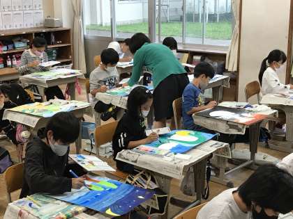 算数の学習に取り組んだり,図工の作品作りに取り組んだりする様子です。また,明日の運動会の日程を再確認する様子も見られました。