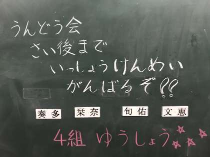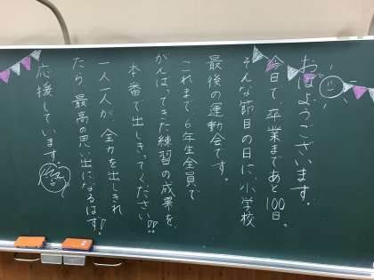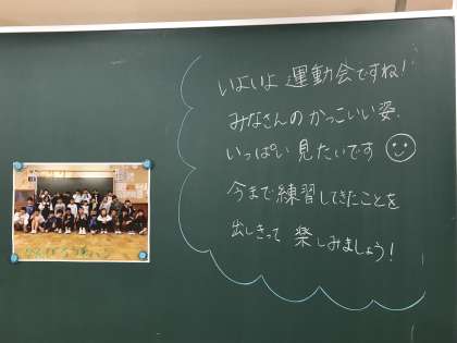運動会に向けた担任のメッセージがふきっ子を迎えていました。