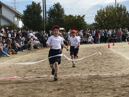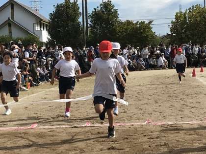 小学校の運動会で初めてコーナーを走る徒競走に挑戦しました。
