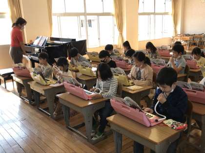 音楽室に移動し,鍵盤ハーモニカの練習に取り組んでいました。