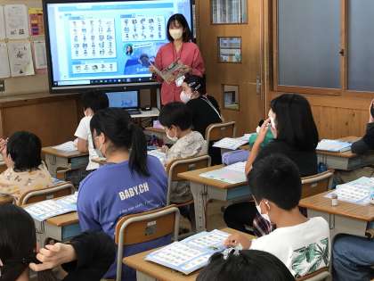 ALTと教頭先生によるコラボ授業の様子です。