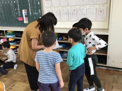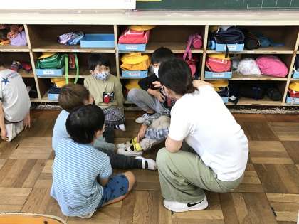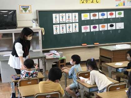 ALTのクリスティーナ先生と英語に親しんだり,グループで役割を決めたりする様子です。