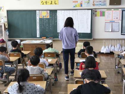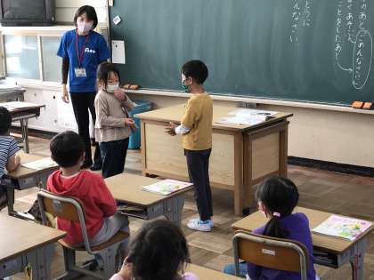 担任が入れ替わって授業を行う様子です。大切なふきっ子は,担任だけでなく多くの目で見るように実践しています。