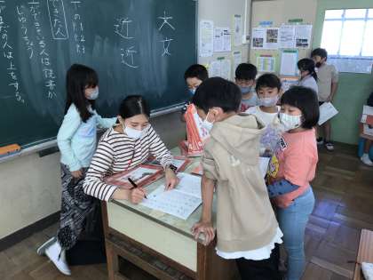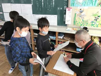 国語の漢字学習に取り組んだり,算数の九九の暗唱に取り組んだりする様子です。