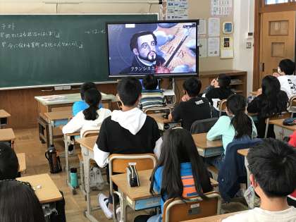 詩を作成したり,歴史の番組を見て学んだりする様子です。