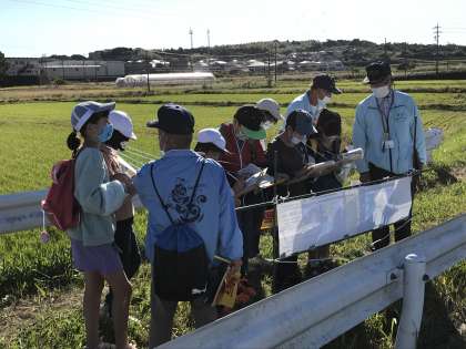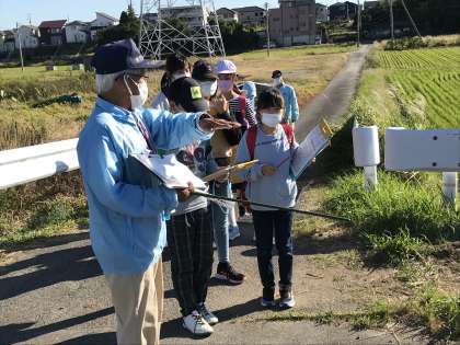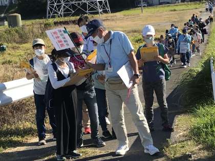 防災ボランティアの方々から丁寧に説明を受ける様子です。