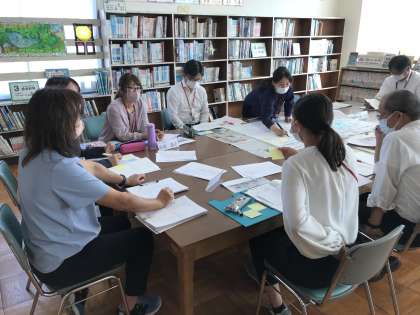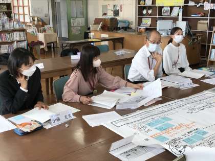 低学年部会による授業分析を行う様子です。成果と課題を明確にし,次につなげる方向性を確認していました。