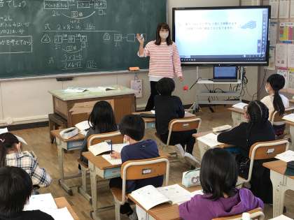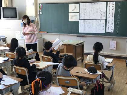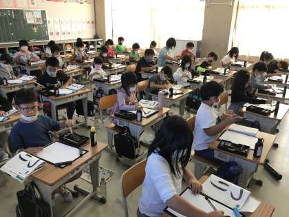 書写で「つり」を練習したり,算数・国語の学習に取り組んだりする様子です。