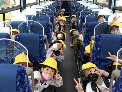 出発前のバスの中でハイポーズ!