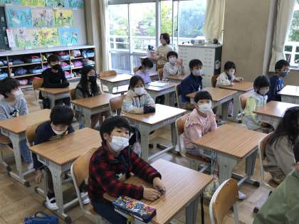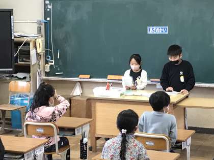 朝の歌を聴いたり,日直を中心に朝の会をする様子です。