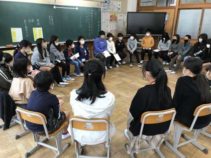外国語や社会の学習に取り組む様子です。また,「よいより学校生活のために」について意見交流していました。