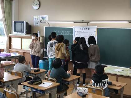ハードル走の映像を見ながらイメージを膨らませたり,図形の問題に取り組んだりする様子です。また,校外学習のバスの座席を決める様子も見られました。