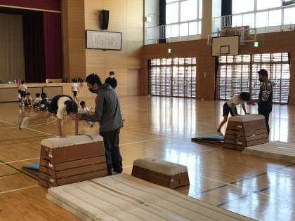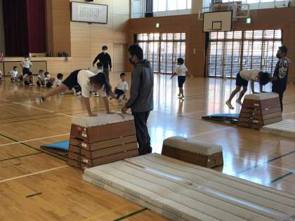 跳び箱運動に取り組む様子です。開脚ジャンプに挑戦中です。