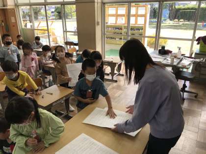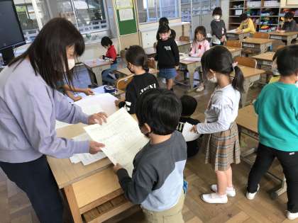 生活アンケートを実施し,アンケート用意を個別に回収する様子です。
