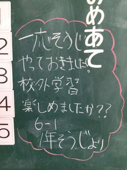 掃除を手伝ってくれている6年生のみなさんから,素敵な伝言をもらいました。1年生をいつも優しく見守ってくれてありがとう!
