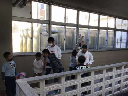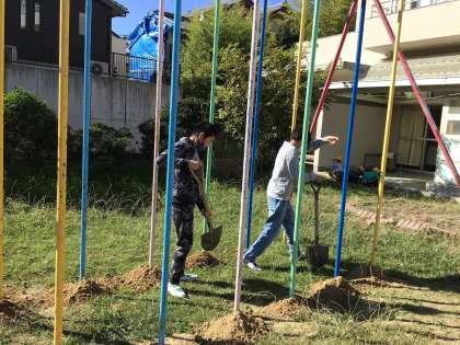 1年生が安全に遊べるように,遊具の下に土を運んでくれました。トイレや教室をきれいにしてくれたり,安全に遊べるようにしてくれたり,1年生のためにいつもありがとう!