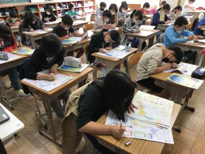 都道府県名の学習に取り組んだり,話し合い活動で意見交流したりする様子です。