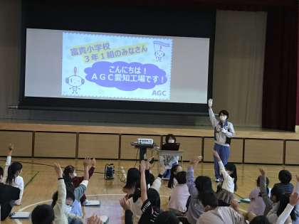 地元企業のAGCさんが学校に来て出前授業を行ってくれました。