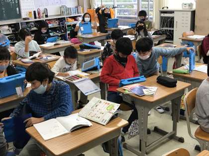 タブレット端末を活用した学習もお手の物となってきました。子どもたちの成長には感心させられます。