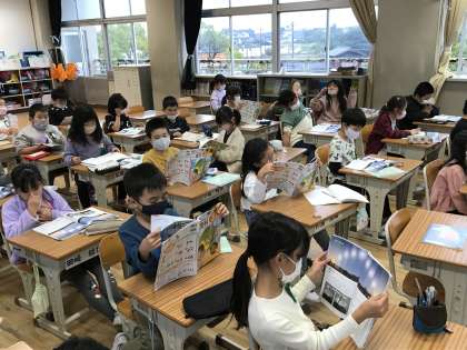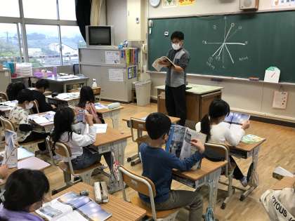 教科分担制による理科の学習に取り組んでいました。今日は,太陽が出ていないので,蛍光灯を活用してかげ作りに取り組んでいました。