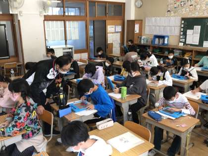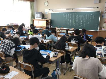 卒業アルバムの個人者写真撮影とともに昨日の校外学習のまとめに取り組んでいました。