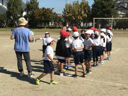 おもちゃ作りをしたりグラウンドでドッチボールをしようとしたりする様子です。