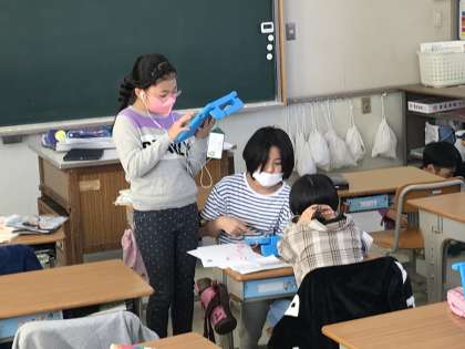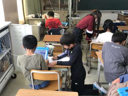 学年公開日に向けて,グループごとに発表の準備をする様子です。