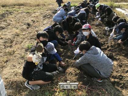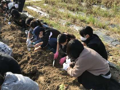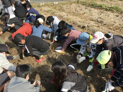 サツマイモの収穫に取り組む様子です。