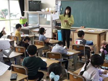 漢字の止めやはらいの確認したり,プリントの解答を確認したりする様子です。